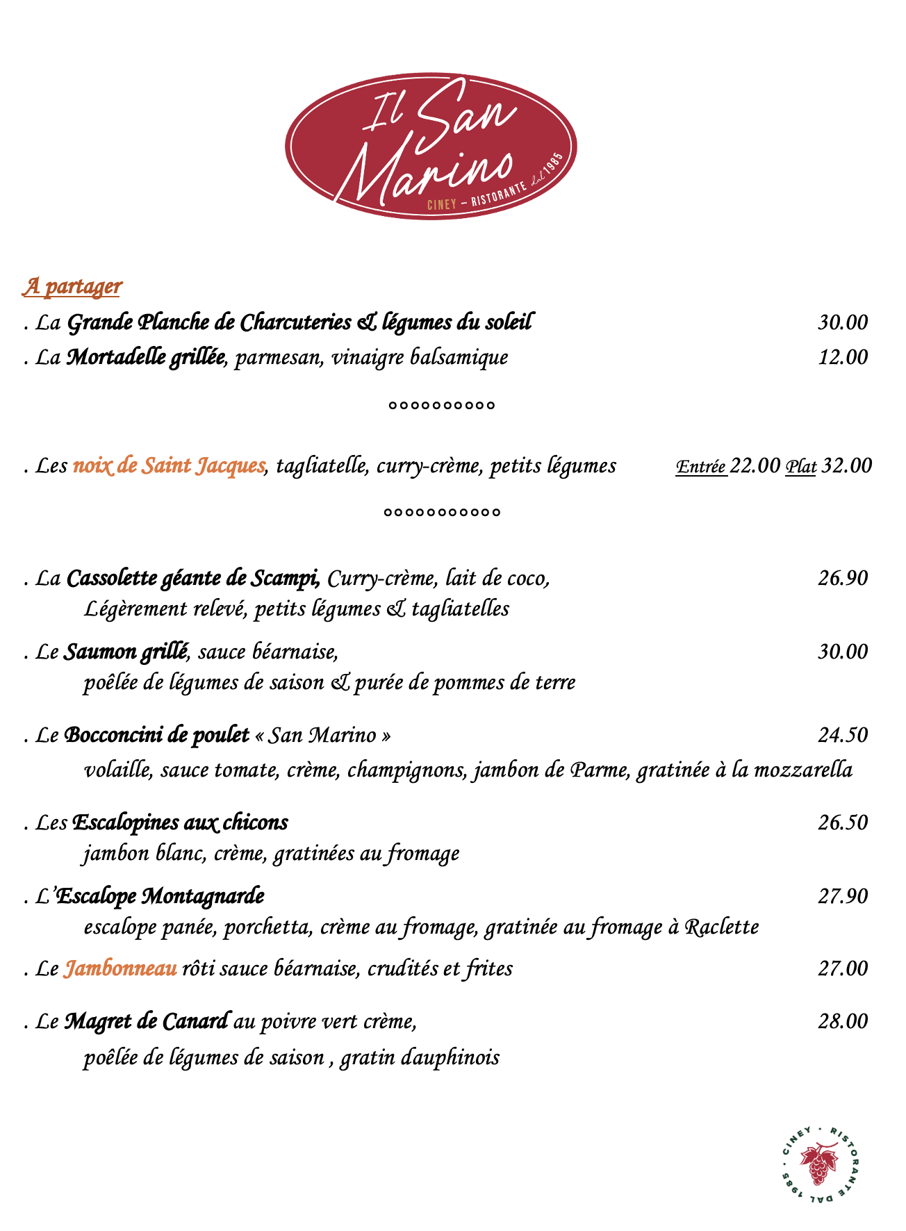 Une adresse qui depuis plus de 30 ans est devenue incontournable. Tenue d’une main de maître par Rodrigue en cuisine, Diego et Graziella en salle et une équipe au petit soin.